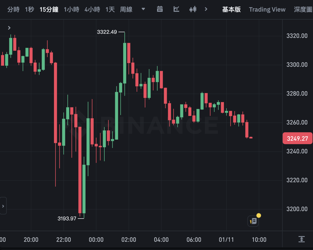 以太坊走勢與比特幣雷同,但波動更劇烈。以太坊在數據公布後的 15 分鐘內下殺 2.61%,並在昨日約 11 點跌破 3,200 美元,最低來到 3,193.97 美元,隨後或許受比特幣拉回影響,也反彈至 3,322.49 美元,截稿前暫報 3,249.27 美元,近 24 小時小漲 0.77%。